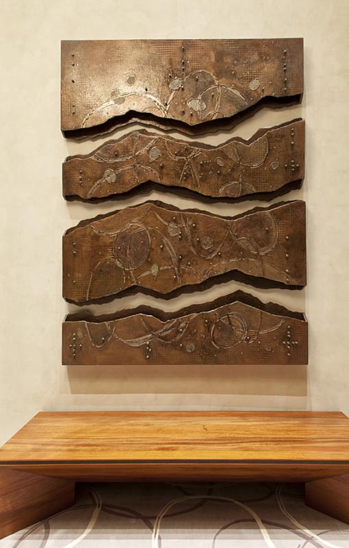 A beautiful metallic abstract was created to compliment the tones inside this master bedroom suite