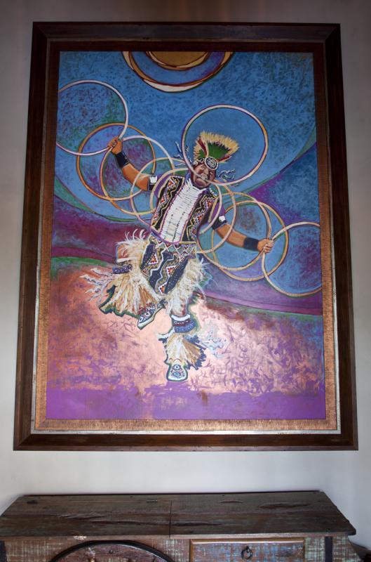 This acrylic painting of a Native American hoop dancer hangs in the entryway of a clients home.