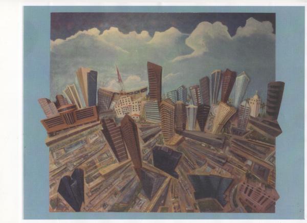 This highly detailed cityscape of the Phoenix skyline was created using acrylics over foam core panels